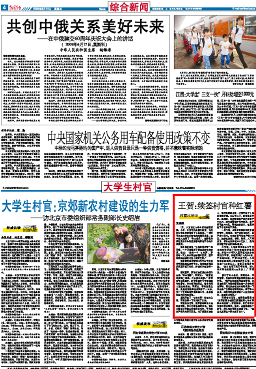 来自密云的王贺2006年毕业于北京农学院政法系法学专业。他被选派到延庆县康庄镇三街村,担任村主任助理一职。