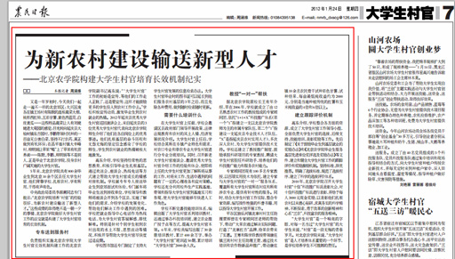 中央政治局委员李源潮同志专门批示:“北京农学院培养‘村官’的经验很好,为新农村建设输送了新型人才。”这些成绩的取得绝不是一朝一夕的事情,北京农学院做好大学生村官工作的法宝就是构建了大学生村官培育的长效机制。