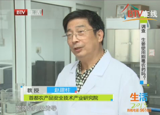 近日,北京电视台财经频道到我校,就“生姜使用剧毒农药吗?”这一主题对我校基础部教师赵建庄进行采访,相关节目报道于5月19日北京电视台生活频道《生活2013》栏目播出。