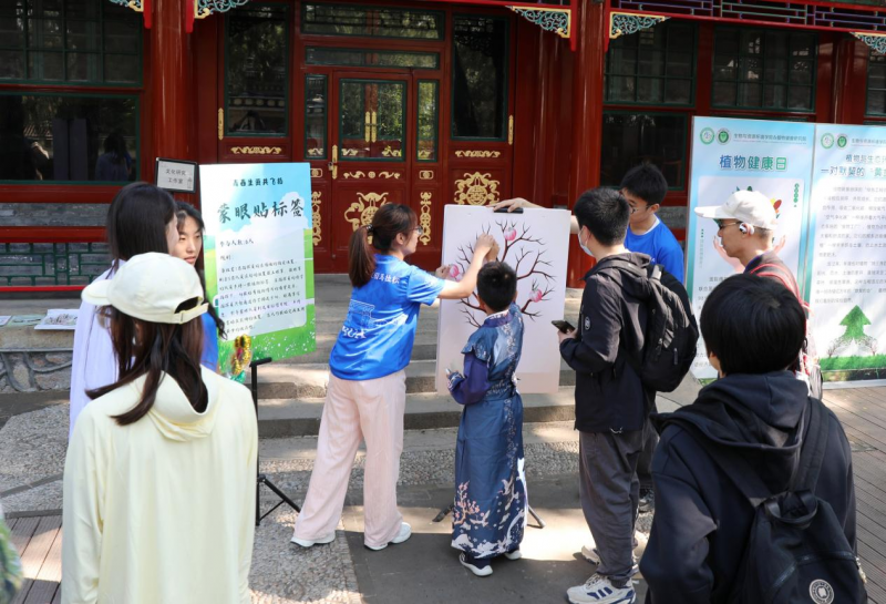 当天,活动在颐和园养云轩开放“古典园林生态”工作室和“古树”工作室,还设立了植物健康、古树保护、智慧植保等科普宣传展板,陈列出形态各异的植物病虫害标本、古树年轮标本。这些标本直观展现了病害对植物的侵蚀过程,引发游客对植物健康危机的深刻思考。北京农学院师生制作的图文并茂的科普展板,从常见病虫害的识别技巧到绿色防控的前沿技术,专业讲解深入浅出,让植物科学知识变得通俗易懂。往来游客纷纷驻足,不时向师生提问。尤其是师生志愿服务队现场发放精心编制的《家庭绿植养护小贴士》,并针对盆栽枯萎、月季黑斑病等常见问题提供一对一解答,深受市民欢迎。