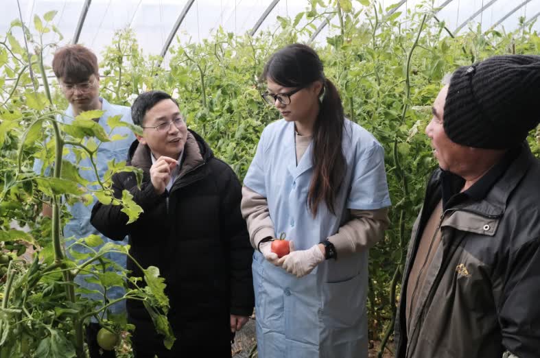 眼下,坐落在昌平区崔村镇南庄营村的北京农学院科技小院里,十余棚番茄正在经历关键的转色和膨果期。趁着春节假期,农学院院长、全国高校黄大年式教师团队负责人段留生带领师生走进科技小院,送技术讲科普,为种植户“把脉开方”。