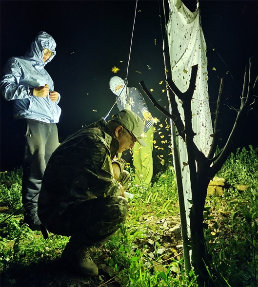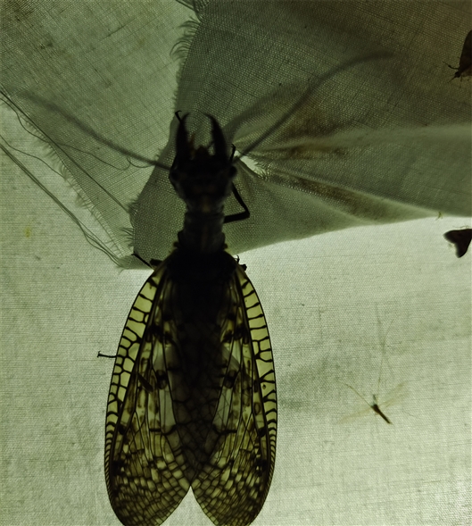 7月2日,北京农学院研究团队在北京市蒲洼自然保护区灯诱,进行昆虫多样性调查。在21点09分发现陆续有数只巨齿蛉出现在灯诱区域。21点11分捕获第一只巨齿蛉成虫。