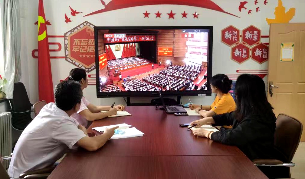 6月27日上午9时,中国共产党北京市第十三次代表大会在雄壮激昂的国歌声中隆重开幕。蔡奇同志代表中共北京市第十二届委员会向大会作题为《在习近平新时代中国特色社会主义思想指引下奋力谱写全面建设社会主义现代化国家的北京篇章》的报告。我校师生高度关注,认真学习,校领导带头在第一会议室与基层党支部共同观看开幕式直播,全校各二级党组织组织师生多渠道收看党代会开幕式,学习聆听蔡奇同志工作报告,并结合学习工作实际畅谈感想体会。