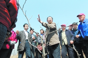 昨天,农学院专家为果农讲解枣树修枝的方法。当天,北京农学院组织专家学者来到昌平区裕陵村,为果农讲解枣树病虫害防治和科学种植知识。本报记者 方非摄