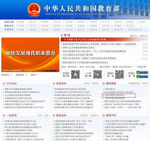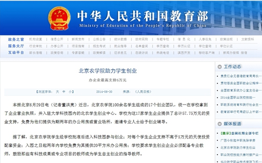 月30日,教育部官方网站转载人民日报报道《北京农学院助力学生创业》,并在教育部官方网站首页“媒体聚焦”栏目推介。