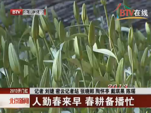 近日,北京卫视记者到我校密云百合种球产学研基地做采访,相关节目报道“人勤春来早 春耕备播忙”于3月17日北京卫视《北京新闻》栏目播出,点击观看 http://space.btv.com.cn/video/VIDE1363518202923719
