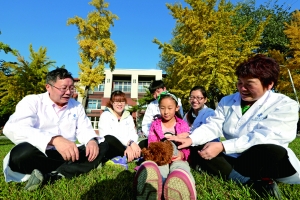 昨日,在北京农学院校园里,动科系的师生与身患“忧郁症”的一只狗狗一起互动玩耍,享受和美秋色。许多宠物由于主人上班没有时间照料而患上“忧郁症”,在风景优美的户外对它们进行心理治疗,更有利于其迅速康复。 首席摄影记者 蔡代征/摄