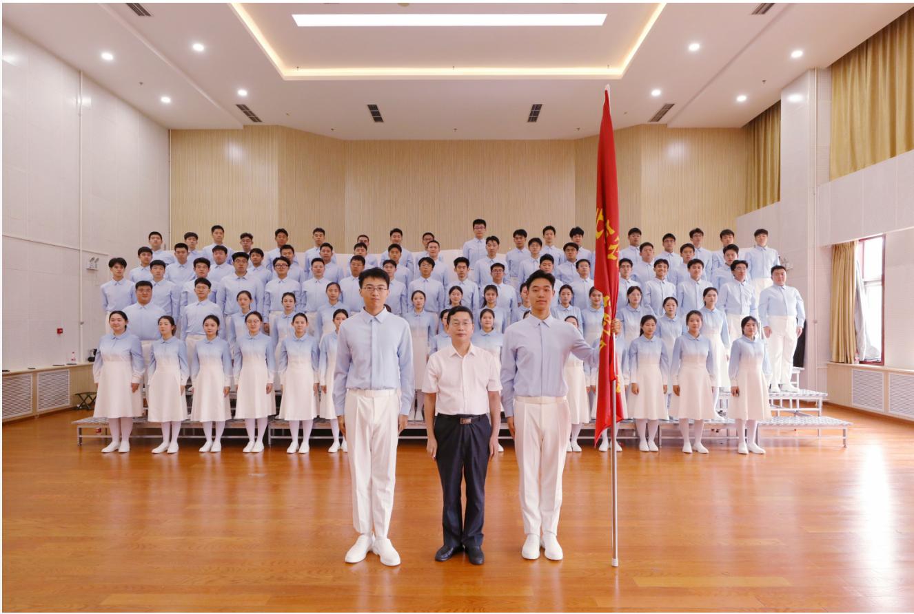 在9月2日举行的出征誓师大会上,全体合唱团师生郑重宣誓,表示听党指挥、服务大局,全力以赴、团结协作,不负使命,勇于担当,以最佳的精神风貌彰显北农青年的责任担当,以坚定的信念和满腔的热情完成任务,用实际行动诠释着对党和人民的忠诚。学校为8位表现突出的同学举行入团仪式。同学们表示,在重大活动前夕光荣加入团组织,这是一堂最生动的爱国主义“大思政课”程,一定会成为一生难以忘怀的记忆。