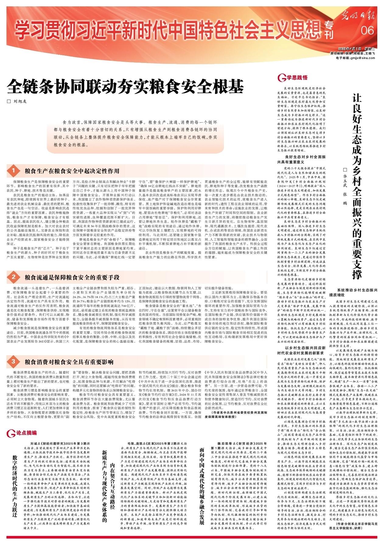 以绿色科技创新发展农业新质生产力。以数字技术赋能农业绿色转型是破解传统农业资源消耗高、生态效率低等瓶颈的关键措施,能够不断推动传统农业向资源集约、环境友好的现代化智能化发展模式转型,实现乡村经济与乡村生态的双重效益提升。