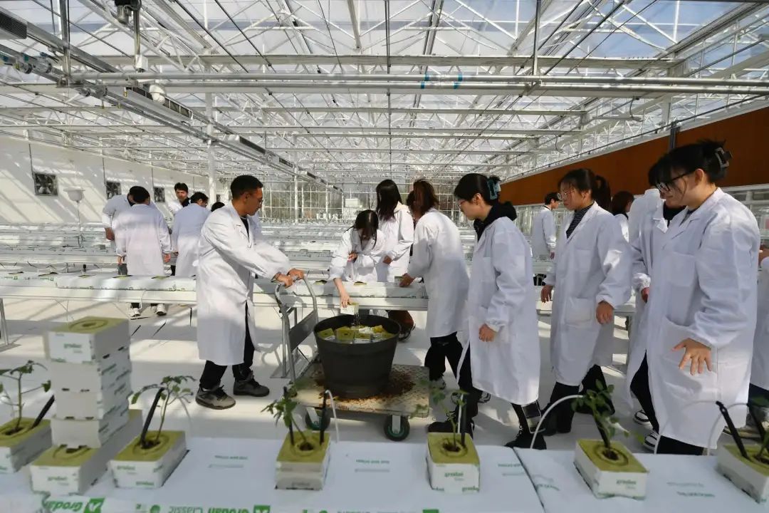 智能温室占地约3000平方米,集无土栽培、自动水肥管理、精准环境调控、实时数据监测等智慧功能于一体,一年四季作物常绿,满足北京农学院师生教学和科研需求。