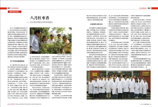 如今,在整个研究团队的共同努力下,红枣挂满枝头,比以往更显丰硕。项目获奖后,王有年把所有荣耀都归功于团队的集体努力。他说:“众人拾柴火焰高,团结协作是取得成功的基础。发展枣产业和枣文化,对于弘扬民族精神和复兴民族文化,也具有积极意义。”