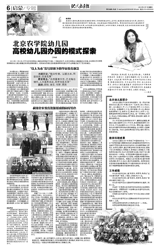 【现代教育报】北京农学院幼儿园高校幼儿园办园的模式探索