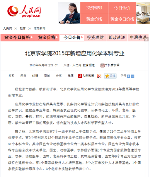 经北京市教委、教育部评审,北京农学院应用化学专业被批准为2014年度高等学校新增专业。