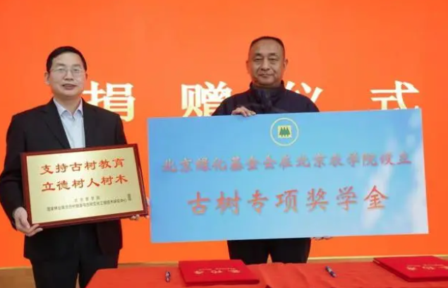 古树保护也是北京绿化基金会的重要工作内容,为了激发北京农学院古树保护方向班学生勤勉科研、勤奋学习,积极投身古树保护、林业建设和绿化事业,帮助品学兼优的优秀学生顺利完成学业,北京绿化基金会在北京农学院设立古树方向专项奖学金,资金全部来自北京绿化基金会保护北京古树名木专项基金。据北京市绿化基金会常务副秘书长王棠介绍,截至2023年3月,保护北京古树名木专项基金已募集100余万元。
