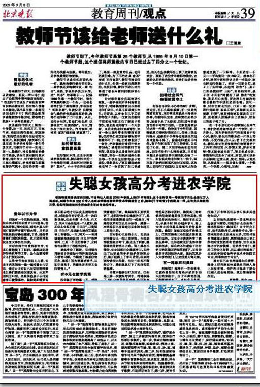 看到眼前清秀美丽的刘璐,不由得让人想起2005年春晚上的《千手观音》,这个当时获得一等奖的节目让全国亿万人民感动。刘璐今年以538分考入北京农学院植物科学技术学院园艺2班,她和《千手观音》中的演员一样,虽有先天神经性耳聋,但却用她坚毅的生活态度去面对命运的考验。