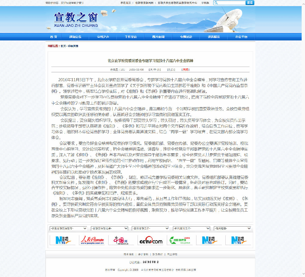【宣教之窗】北京农学院党委常委会专题学习党的十八届六中全会精神
