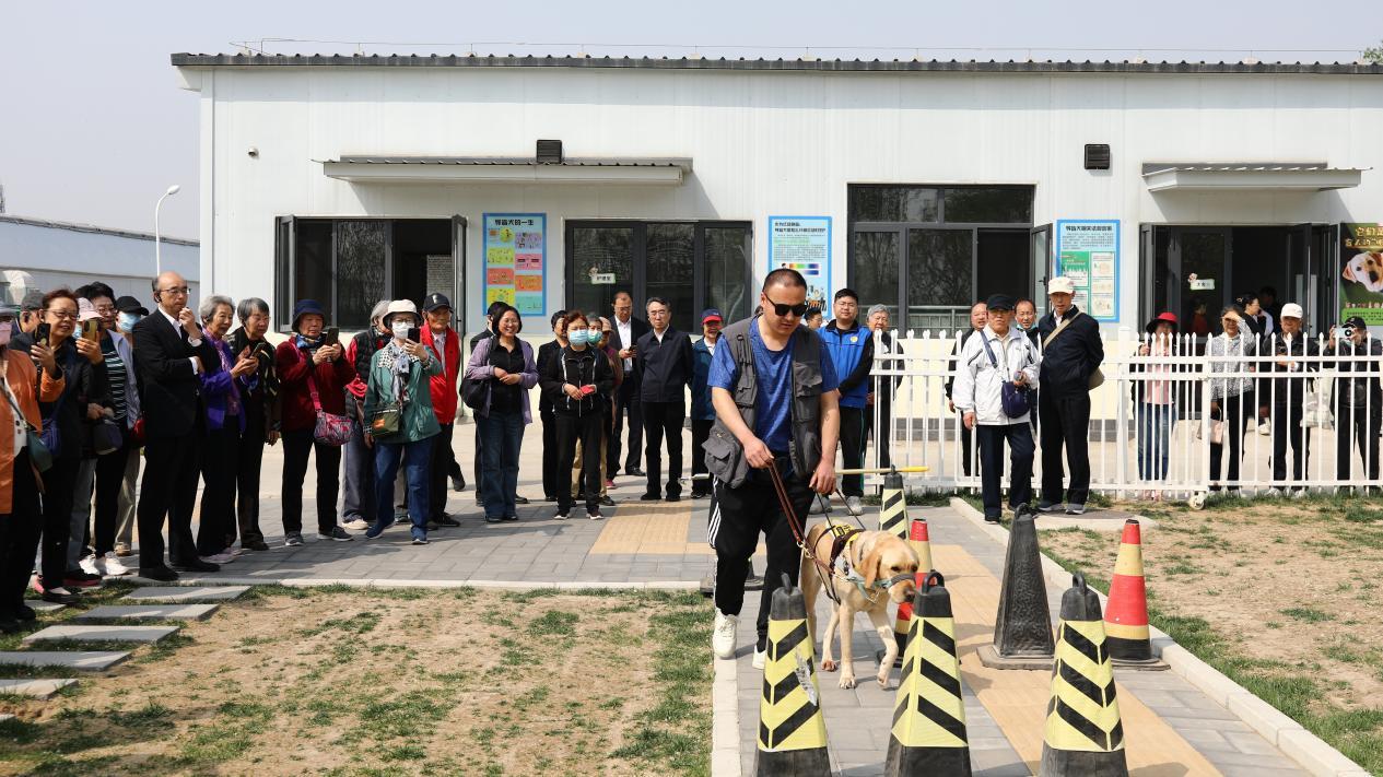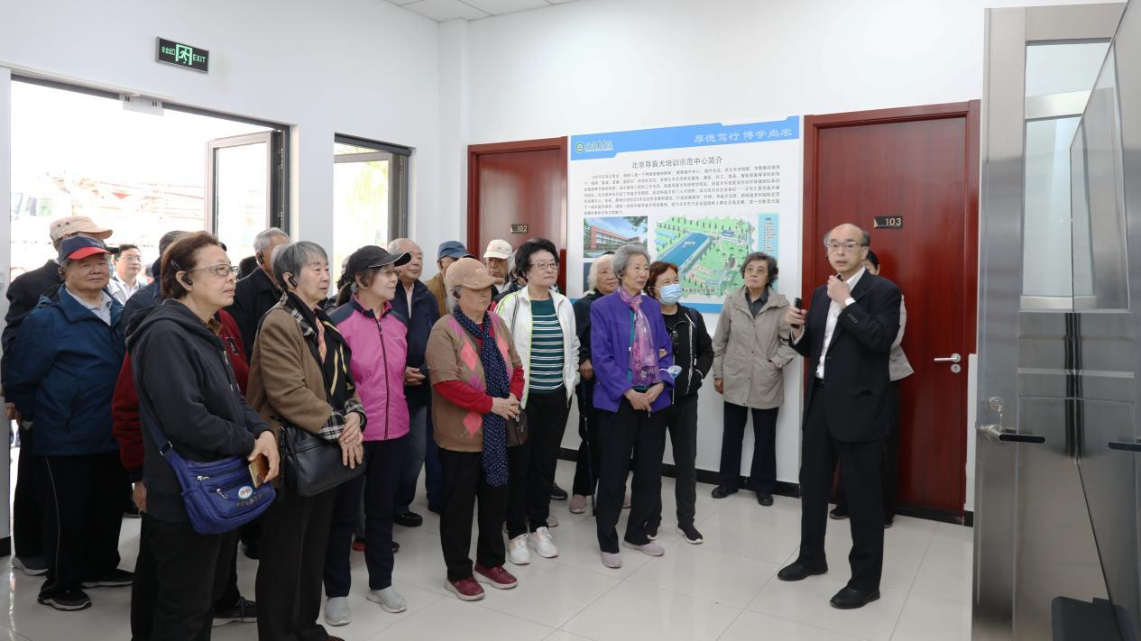 在北京市导盲犬培训示范中心,老同志们参观了解北京市导盲犬培训基地的建设进展与运行情况,察看了犬舍、中兽医诊疗室、诊断处置室以及训练场等,现场观摩了导盲犬训练演示,对基地在提升视障群体生活品质、服务首都残疾人事业高质量发展的做法和进展给予肯定。