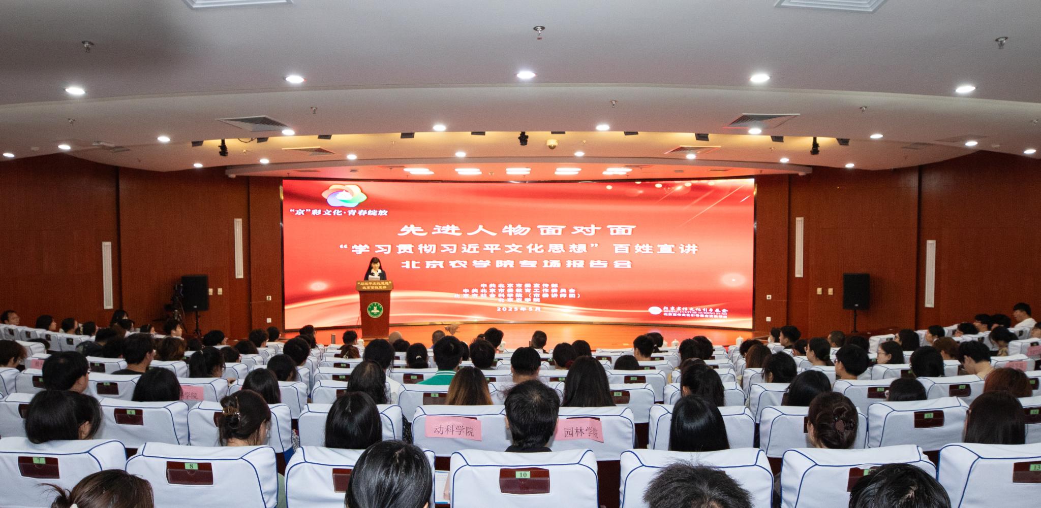 5月14日下午,“‘京’彩文化 青春绽放”行动计划“信仰行”之先进人物面对面——“学习贯彻习近平文化思想”百姓宣讲报告会在我校图书馆报告厅举行,260余名师生代表现场聆听榜样人物故事,感悟习近平文化思想的实践伟力,同上一堂鲜活生动的“大思政课”。