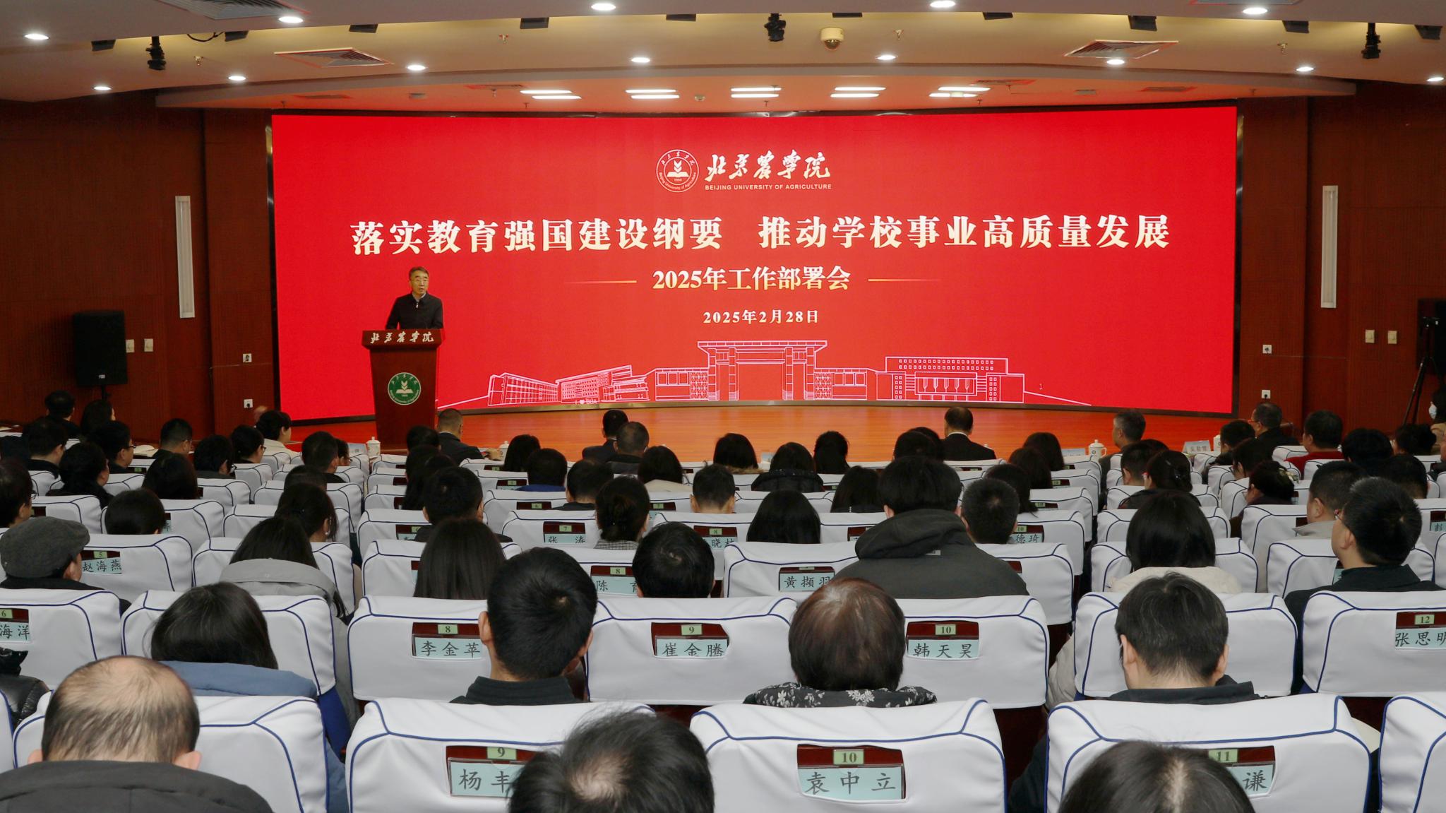 2月28日,学校召开2025年工作部署会,深入学习贯彻党的二十届三中全会精神和习近平总书记关于教育、关于“三农”工作的重要论述,认真贯彻落实教育强国建设规划纲要和全国全市教育大会精神,全面部署学校2025年重点工作。党委书记赵锋主持会议并讲话,党委副书记、院长段留生作2025年工作部署。