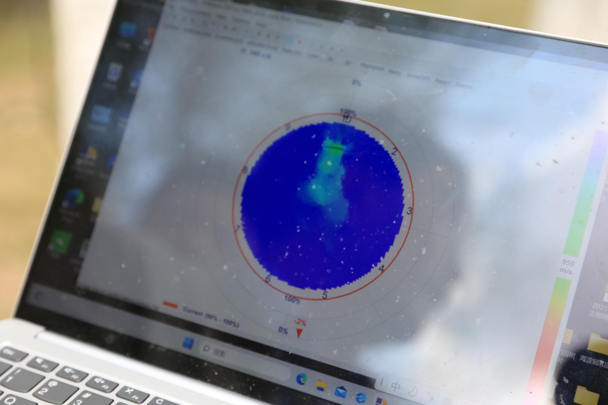 同学们排起长队依次上前拿起“小锤”击打探测点,尽量做到用力均衡以保证检测数据的准确性,每绕树敲击一圈就跑到电脑旁查看最新的检测图像。