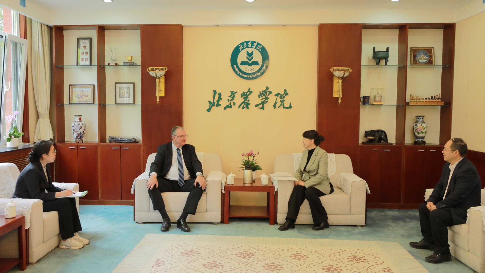 武艳代表学校对Luiz Gustavo Nussio教授的来访表示热烈欢迎,她表示,圣保罗大学作为巴西顶尖学府,在农学、生命科学等领域处于世界前沿;北京农学院作为北京市属唯一本科层次农林高校,形成了“都市型现代农林高等教育”的办学特色,期待两校在人才培养、科学研究等方面开展更多实质性合作。