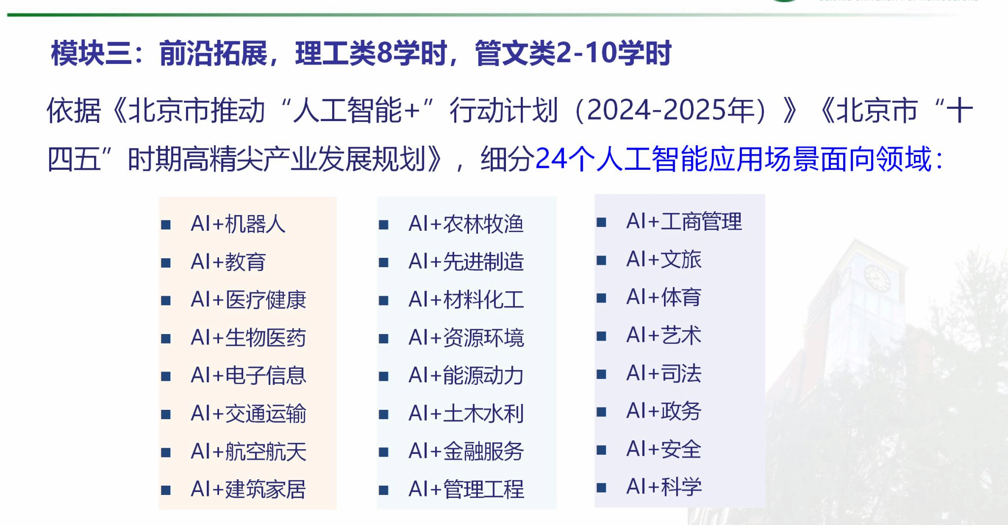 据邱权介绍,人工智能导论通识课总课时均为32学时,但理工类与管文类在理论和实验的课时分配上各有侧重。理工类理论课28学时,实验课4学时,较多的理论课时可帮助理工科学生深入理解人工智能背后复杂的技术原理与算法逻辑。而管文类理论课24学时,实验课8学时,相对更多的实验课时能让管文类学生在实际操作中体会人工智能在不同场景的应用,更多聚焦人工智能在管理、经济、社会领域的应用及影响。
