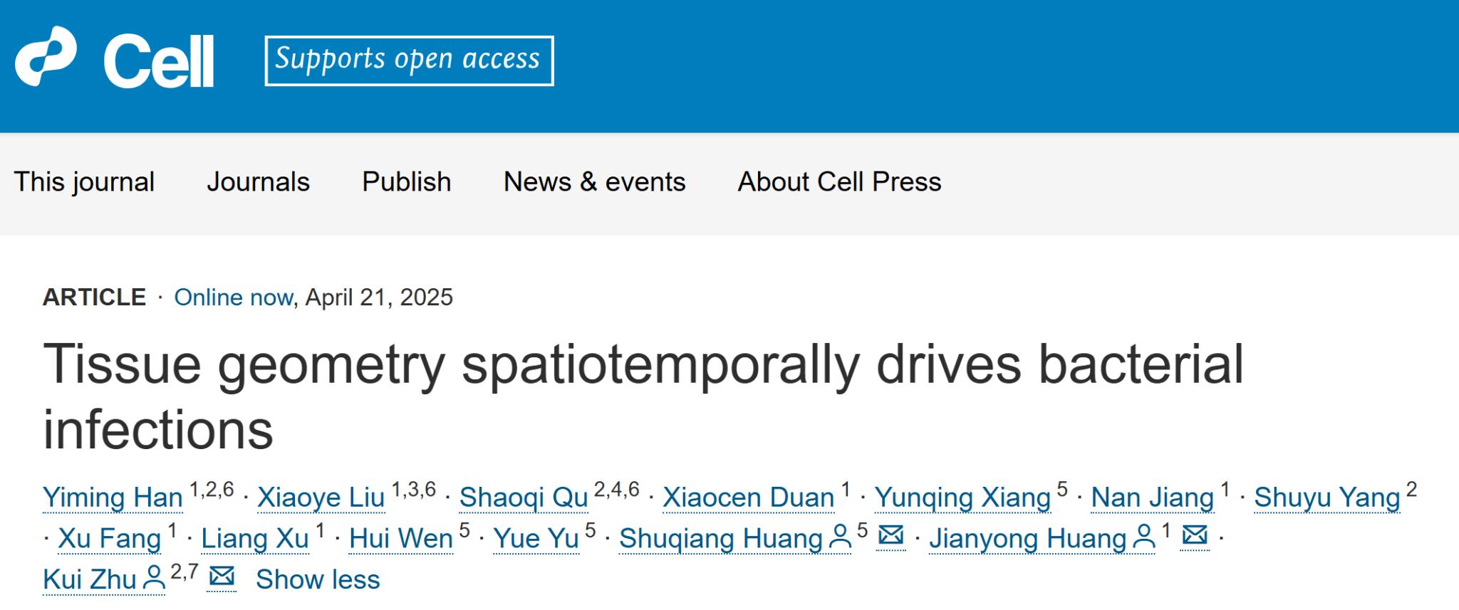 作为一名青年教师,刘晓晔常常在课堂上告诉学生:“科学最迷人的地方,往往存在于那些被忽视的细节中。”而这次与其博士导师中农大朱奎教授、博后导师北大黄建永研究员、深圳先进研究院黄术强研究员的跨界合作,正是从这样一个“被忽视的细节”——组织细胞边缘的力学微环境出发,意外打开了理解细菌感染的全新视角。
