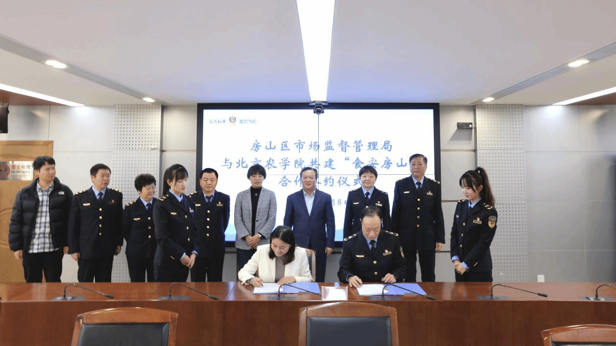 11月8日,学校与房山区市场监督管理局签订共建“食安房山”合作协议。我校党委常委、纪委书记吴君楚,房山区市场监督管理局党组书记、局长李军出席签约仪式。