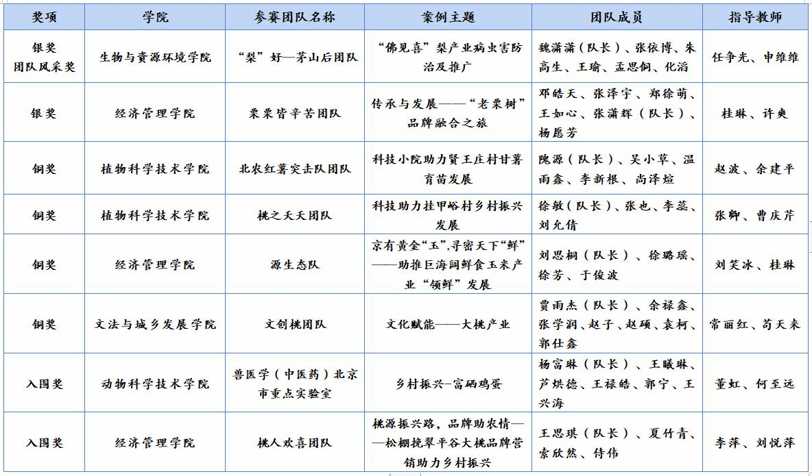 我校共有21个研究生团队参赛。在第一阶段评选中,2支队伍晋级全国总决赛,4支队伍获得铜奖,2支队伍获得入围奖。6月20日至21日,在贵州省麻江县举办的全国总决赛中,我校“‘梨’好—茅山后”和“栗栗皆辛苦”2支参赛队伍阐释了首都乡村产业振兴案例的实现路径和技术推广应用模式,得到了大赛评委的一致认可,获全国研究生乡村振兴案例大赛银奖。“‘梨’好—茅山后”团队同时获得团队风采奖,张依博和邓皓天2位同学获个人风采奖。