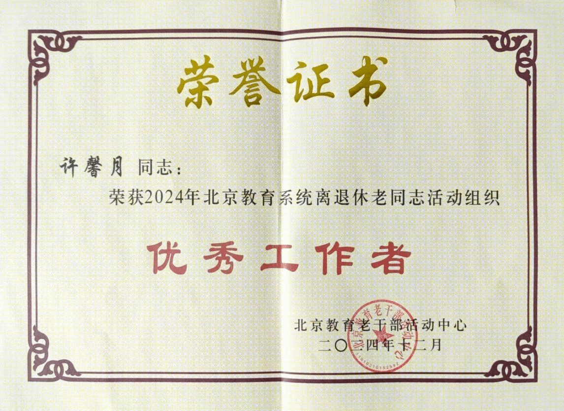 近日,北京教育老干部活动中心举办2024年北京教育系统离退休老同志文体活动总结会。会上公布了2024年庆祝新中国成立75周年系列活动优秀组织单位并对在组织老同志文体活动中表现突出的个人予以表彰。学校获评“优秀组织奖”,我校离退休工作处许馨月获评年度“老干部活动组织优秀工作者”并作典型发言。
