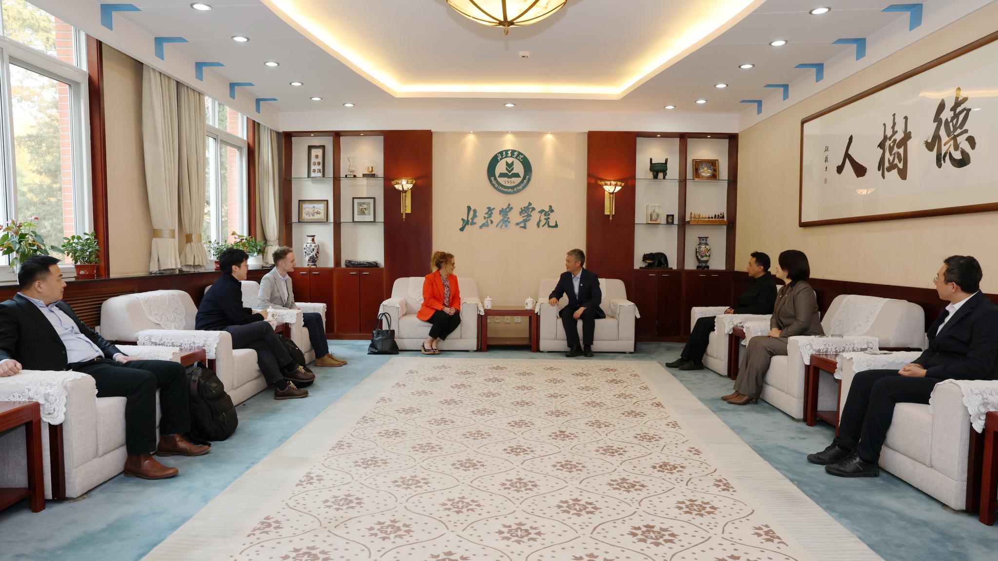 11月7日,英国赫尔大学商法政学院副院长Alison Price-Moir、国际招生主任Calum Porter、中国办公室招生负责人Vicky Zhang等一行访问北京农学院,我校党委常委、副院长张劲柏会见来宾。