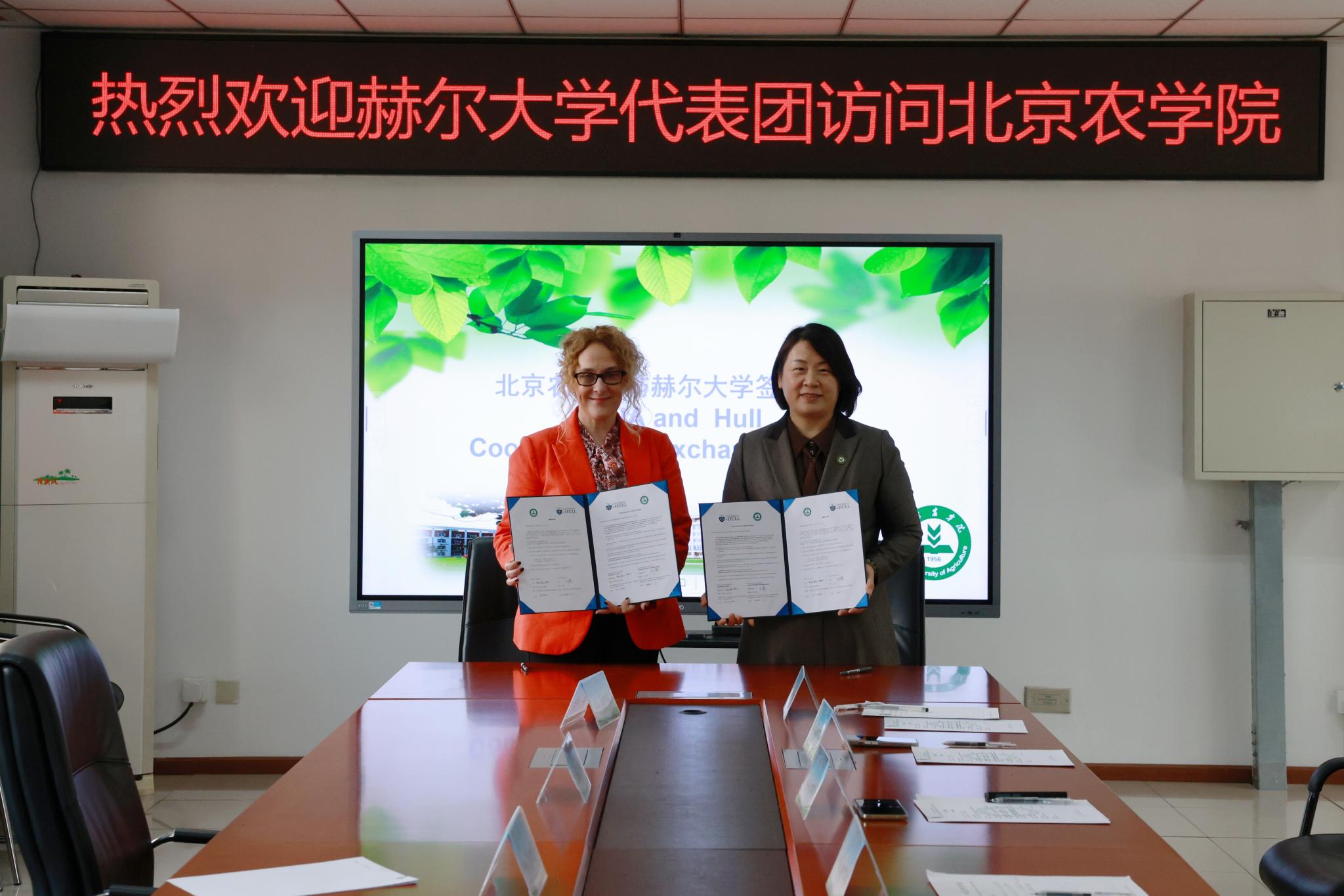 Alison Price-Moir、经济管理学院院长刘芳分别代表英国赫尔大学商法政学院和北京农学院经济管理学院签署合作协议。Alison Price-Moir表示,将继续推进落实双方合作项目,为北京农学院学生提供学习、就业等各方面的支持,帮助学生提升面向未来的竞争力。