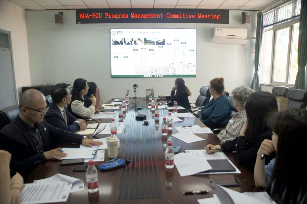 访问期间,代表团一行与国际学院召开学年项目管理委员会会议,双方商议确定了项目管理委员会成员名单,并就加强课程资源共享与建设、扩宽师生交流渠道,进一步巩固合作办学成果,提高合作办学质量等进行了深入研讨并达成一致意见。