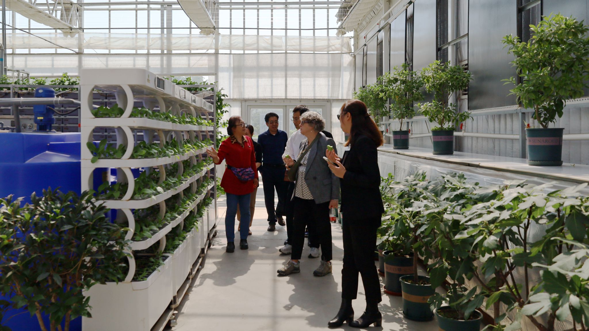 代表团一行来到教学楼观摩了离岸语言课程强化班的上课情况,与正在上课的师生交流,参观了植物科学技术学院实验示范中心、重点实验室等。