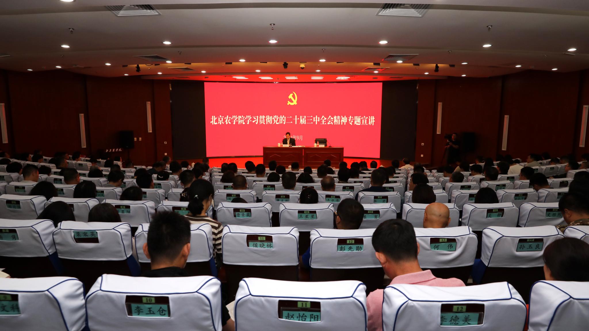 报告会上,段留生紧扣党的二十届三中全会关于统筹推进教育科技人才体制机制一体改革的部署和要求,结合新时代首都发展和全面推进乡村振兴战略需求,深刻分析了学校改革发展面临的机遇与挑战,重点围绕深化教育教学改革、提高知农爱农新型人才培养质量、提升学科专业整体水平、增强科技赋能乡村振兴本领、深化人才发展体制机制改革等方面,作了深入系统的阐释和宣讲。