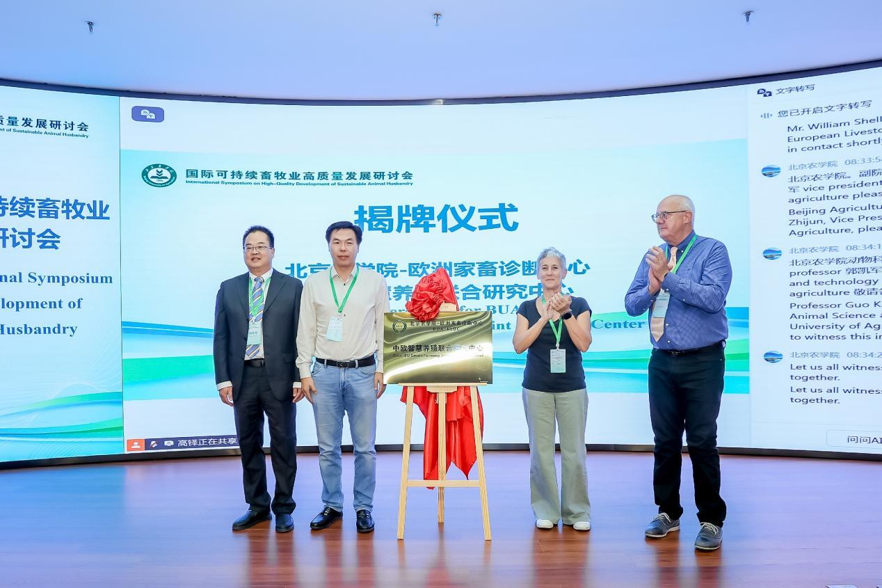 研讨会开幕式上,欧洲动物生产联盟昆虫分会主席、意大利都灵大学Laura Gasco教授,欧洲家畜诊断中心总经理Wim Schielen博士,我校党委常委、副院长曹志军,我校动物科学技术学院郭凯军教授共同为“北京农学院-欧洲家畜诊断中心中欧智慧养殖联合研究中心”揭牌,标志着中欧在智慧养殖领域的合作迈入新阶段。