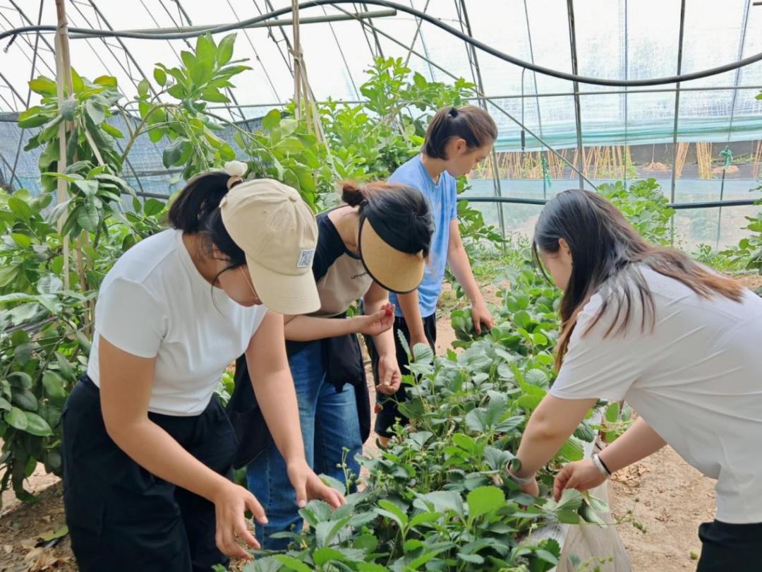 我校生物与资源环境学院浆果科技小院暑期社会实践团在黄体冉、杨明峰老师带领下,走进延庆区张山营镇韩郝庄村,开展一系列农业技术帮扶工作,通过“南果北种”“草莓育苗”“软枣猕猴桃种植”等项目,推动当地农业产业发展。