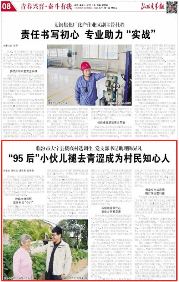陈异凡2022年毕业于北京农学院农业工程与信息技术专业,同年通过考试进驻大宁县楼底村,担任村党支部书记助理。怀着对乡村深深的向往和热爱,同时受到致敬基层扶贫干部的电视剧《江山如此多娇》的影响,一颗理想的种子就此在陈异凡心中生根发芽。