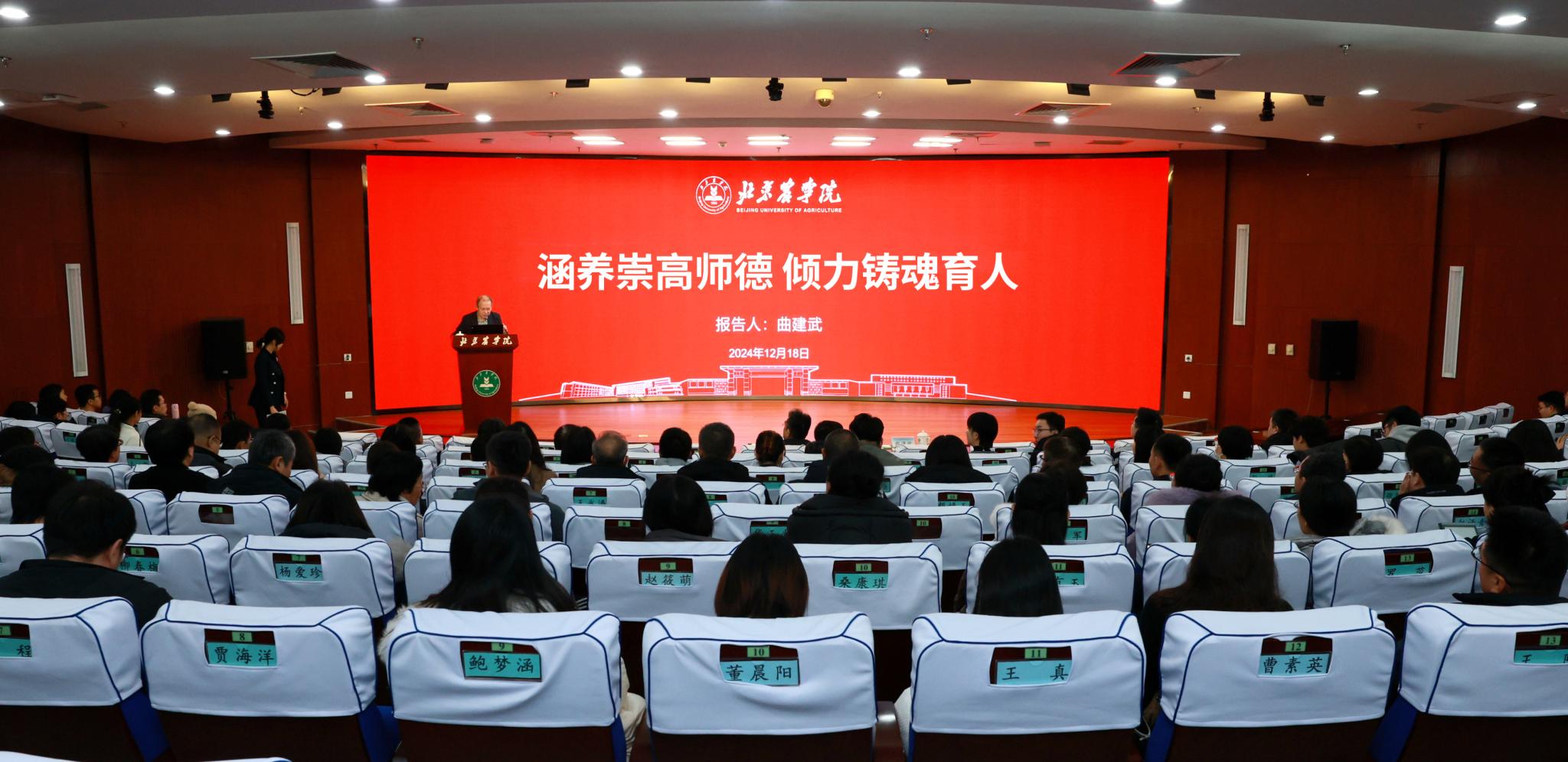 马克思主义学院院长华玉武说:“眼含热泪听完曲建武的报告,被他深沉的爱国主义精神、高尚的师德和无私的奉献精神所打动。我将带领全体思政课教师向曲建武学习,不断增强使命感和责任感,牢记思政课是落实立德树人根本任务的关键课程,教育引导学生把爱国情、强国志、报国行自觉融入建设社会主义现代化强国、实现中华民族伟大复兴的奋斗之中;大力弘扬教育家精神,持续发挥思政引领力,用高尚的道德情操和仁爱之心,教育引导广大北农学子早日成为堪当乡村振兴大任、民族复兴重任的时代新人。”