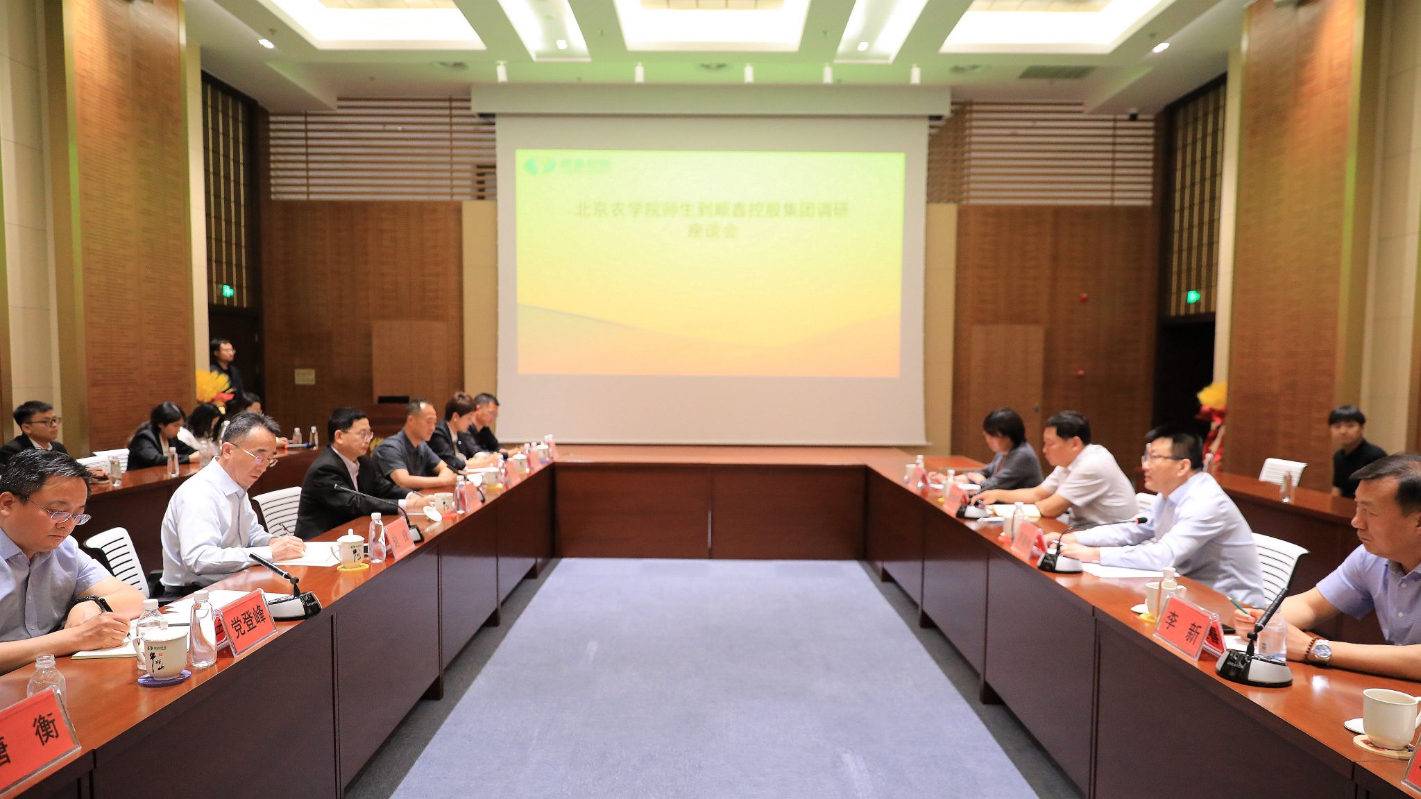 5月7日,学校党委书记赵锋,党委副书记、院长段留生带领相关职能部门负责人、相关二级学院师生赴北京顺鑫控股集团有限公司(以下简称顺鑫控股集团)开展访企拓岗专项调研。顺鑫控股集团党委书记、董事长李颖林,副总经理段春仲、和法文及顺义区农业农村局相关负责人参加座谈交流。