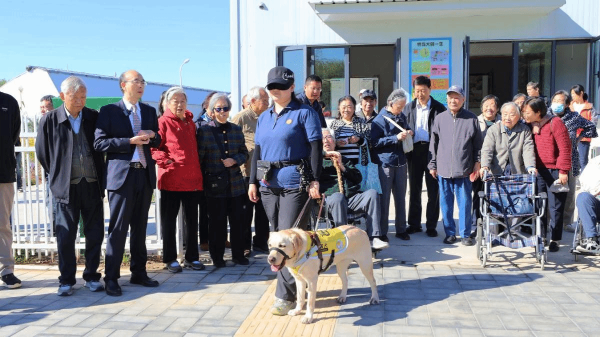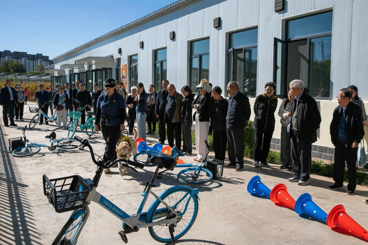 市级老同志来到北京农学院导盲犬培训示范中心,参观了解北京市导盲犬培训基地的建设及运行情况,现场观摩导盲犬工作模拟演示。