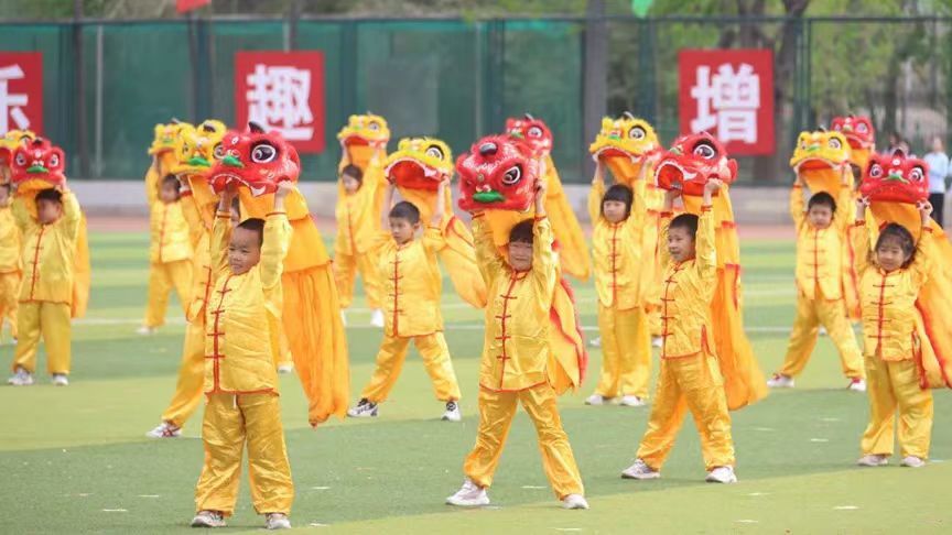 北农幼儿园102名小朋友组成舞狮表演方阵,百余只“小狮子”嬉闹于锣鼓唢呐声间,或捕猎、或跳跃、或嬉戏,穿梭打斗,彰显儿童朝气与传统文化魅力。