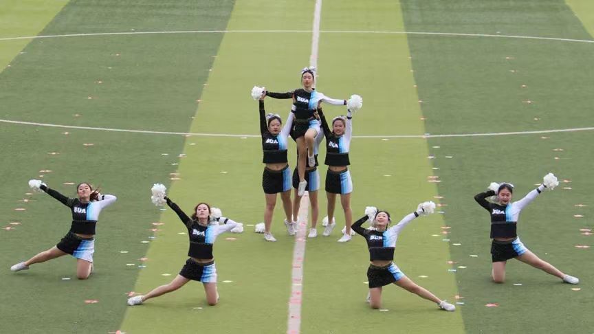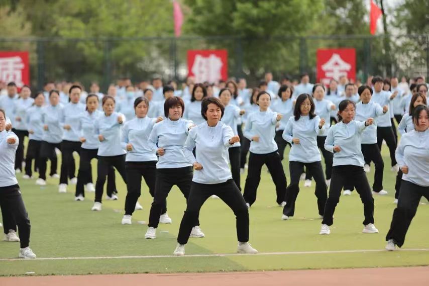 我校教工代表队带来《八段锦》表演,他们时而舒展如松,时而柔韧如柳,一招一式都充满了韵律与美感,展示了传统与现代、力量与柔美的交融。