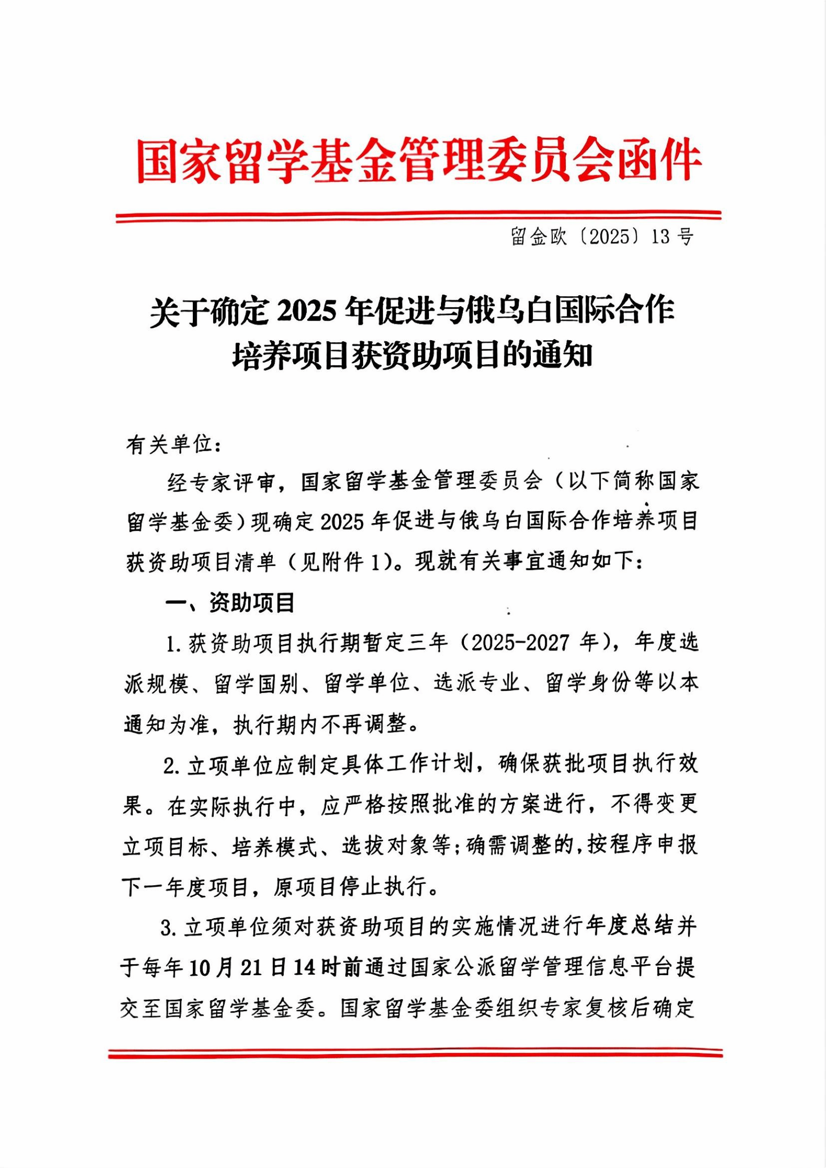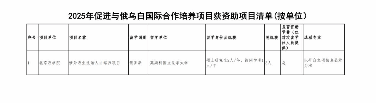 近日,国家留学基金管理委员会公布了2025年促进与俄乌白国际合作培养项目获资助项目名单,我校申报的“涉外农业法治人才培养项目”获批立项。