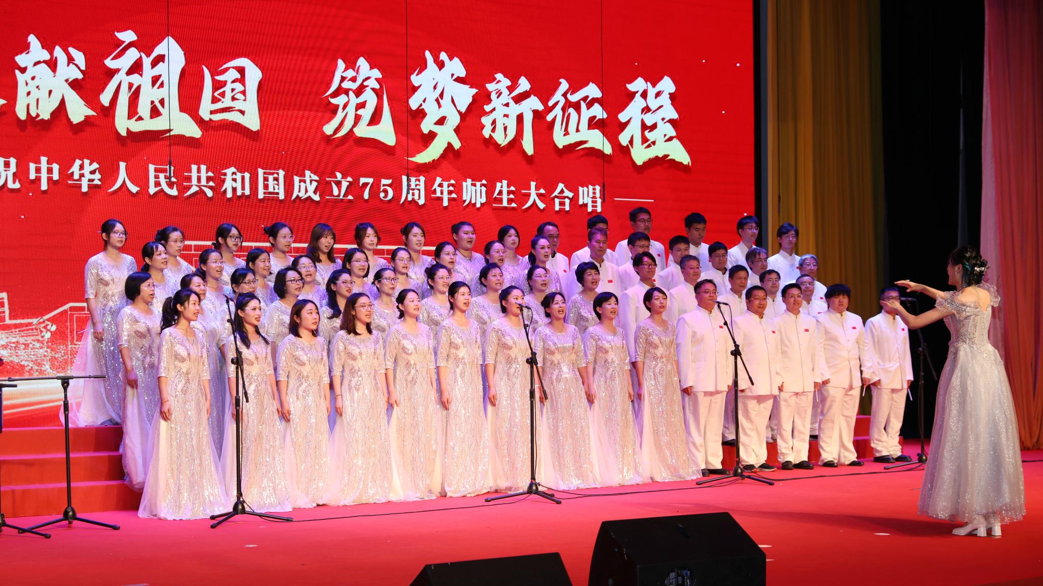 学校教职工舞蹈协会带来舞蹈表演《九州同》,师生合唱团演唱歌曲《是你一直想着我》和《向往》,抒发了师生与祖国同行、争做奋斗者的豪情。