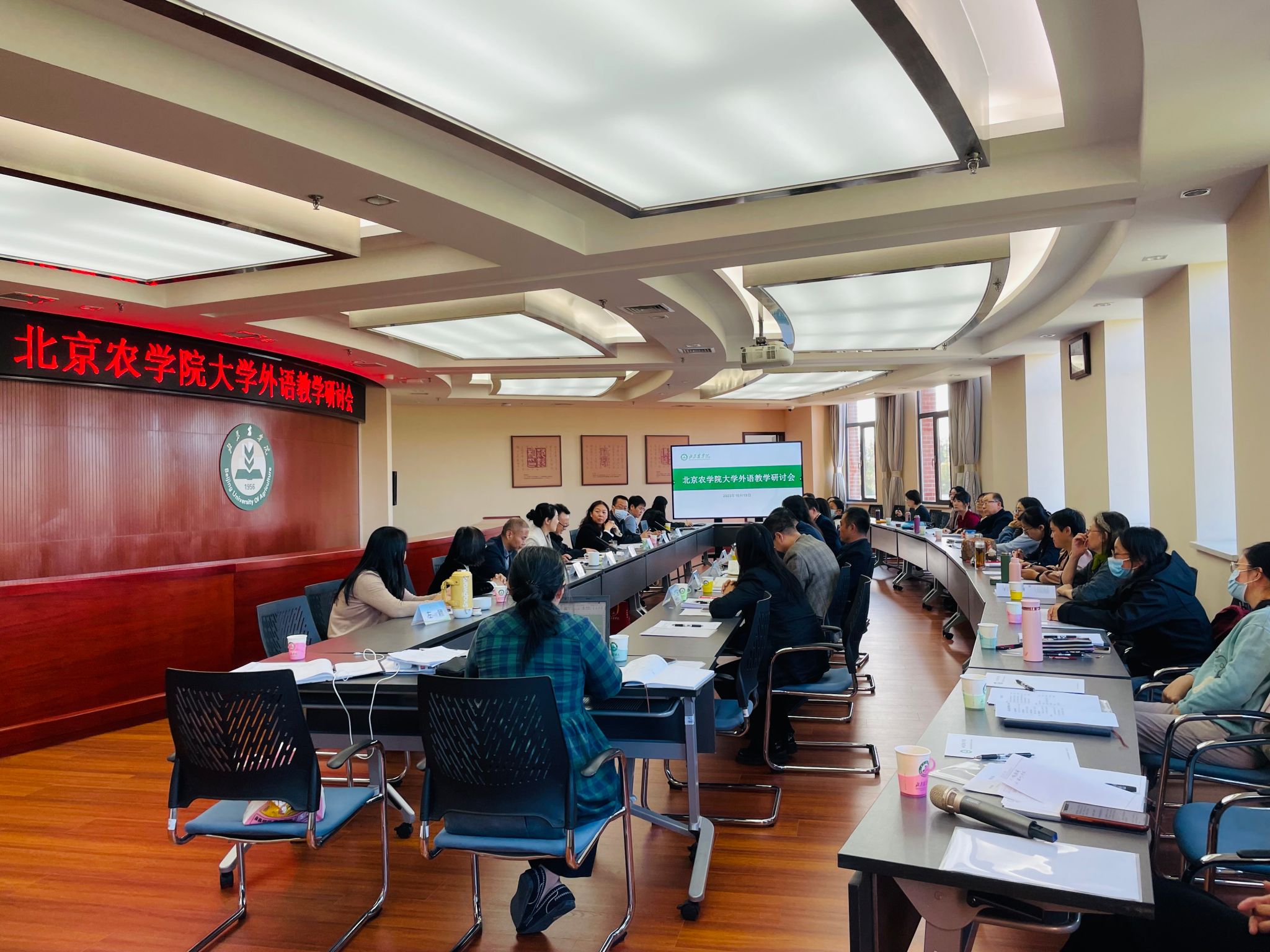 2023年10月19日下午,北京农学院大学外语教学研讨会在图书馆303会议室召开。校党委常委、副院长武艳出席会议。会议邀请北京信息科技大学外国语学院院长朱安博,北京物资学院外国语言与文化学院院长王淑花,北京印刷学院基础教育学院院长孙边旗,北京石油化工学院致远学院教学副院长王秀梅、致远学院外语教研室主任左颖和北京联合大学外语部副主任叶秀娟老师参加研讨。会议由教务处处长马兰青主持。
