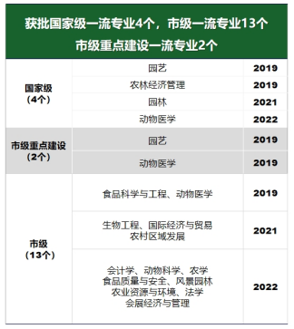 专业内涵建设取得新突破。入选国家级一流专业4个、北京市一流专业13个、北京高校重点建设一流专业2个。学校在全国首次开设林学专业-古树保护培养方向。获批生物育种技术、食品营养与健康两个新农科引导性专业。