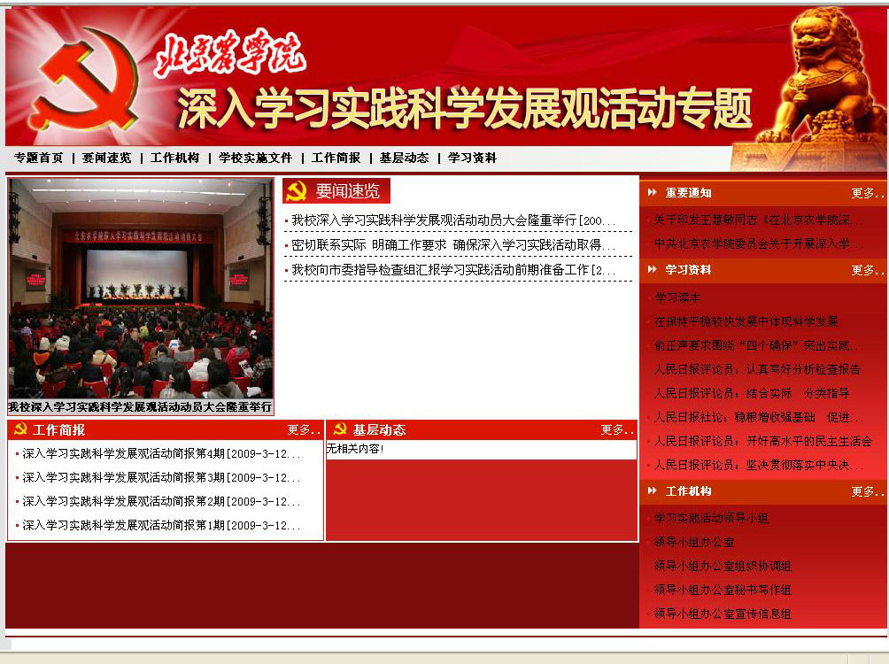 3月12日,我校深入学习实践科学发展观活动全面展开。由我校深入学习实践科学发展观活动领导小组办公室主办、新闻网承办的北京农学院深入学习实践科学发展观活动专题网站也正式开通。
