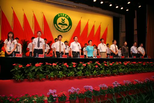 6月5日上午9:00,北京农学院第九次学生代表大会在学校礼堂隆重召开。大会在庄严、雄壮、高昂嘹亮的国歌声中拉开序幕,北京市学生联合会执行主席张韬、校党委副书记高东、校党委副书记高喜军、党政办主任华玉武、学生处处韩宝平、教务处副处长沈文华、团委书记杨宝东、生物技术学院党总支书记赵洪娥及各学院学生工作副主任、团总支书记出席并参加大会。大会由主席团成员常旭同学主持。