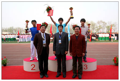 校党委副书记高喜军、副校长杜晓林、副校长姚允聪为学生组运动成绩男子团体总分前三名获奖单位颁奖。